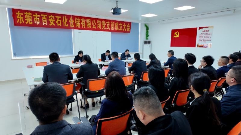 2026 年 1 月 13 日上午,中共东莞市百安石化仓储有限公司支部委员会成立大会隆重召开。沙田镇党委委员黄亢、镇社会工作事务中心主任李九光及相关工作人员莅临指导,百安石化总经理董兆昆、商务及发展总监梁文立、综合管理及技术总监谢维增、营运及工程总监叶笑媚、同舟码头总经理张东奎等企业管理层与党支部全体党员共同参会。
